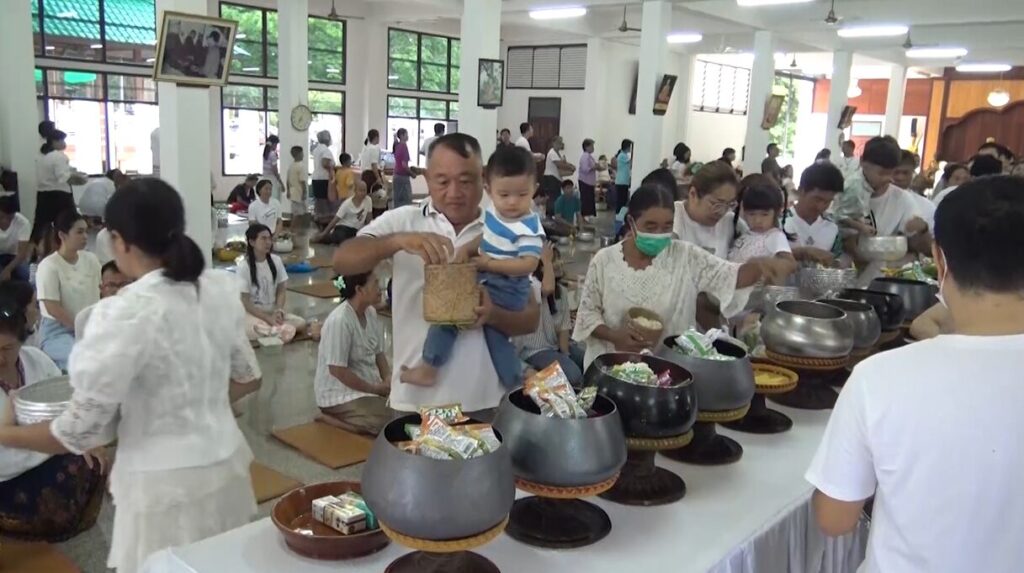 พัทยา 22 พ.ค.-ทั่วไทยคึกคัก หลายครอบครัวหอบลูกจูงหลานร่วมกันทำบุญตักบาตร เพื่อความเป็นสิริมงคล เนื่องในวันวิสาขบูชา และเตรียมเวียนเทียนต่อช่วงเย็น