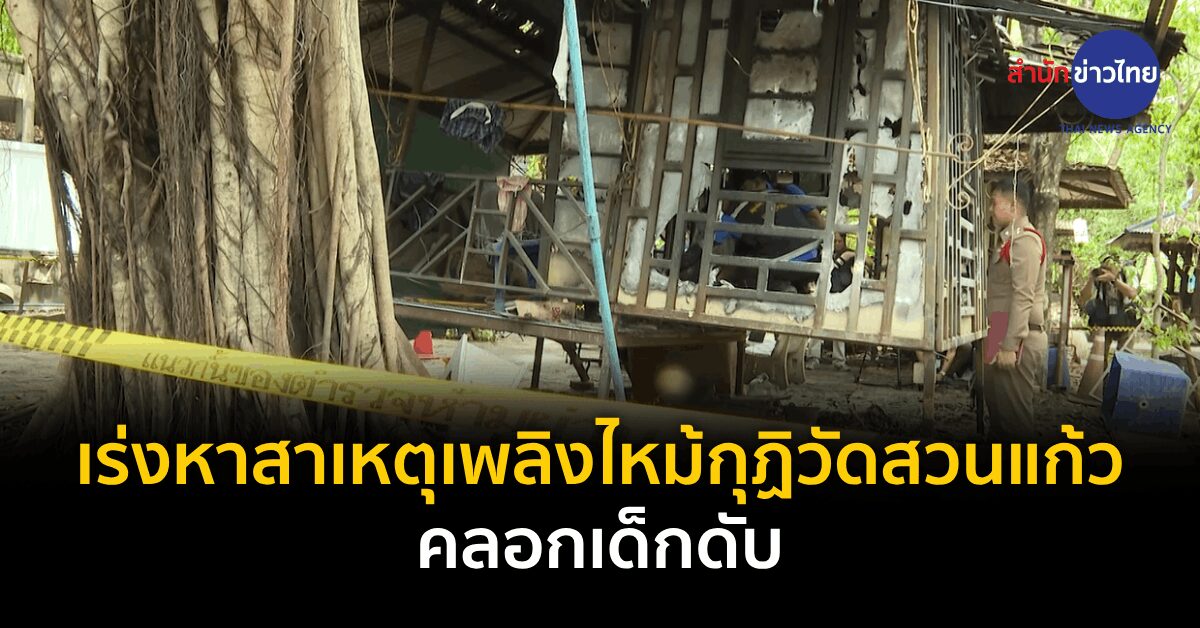นนทบุรี 23 พ.ค. – ตำรวจเร่งหาสาเหตุเพลิงไหม้กุฏิวัดสวนแก้ว จ.นนทบุรี เมื่อคืนที่ผ่านมา ทำให้เด็กชาย 3 คน เสียชีวิต เบื้องต้นคาดไฟฟ้าลัดวงจร ด้าน “พระพยอม” เผยเป็นครั้งแรกที่เกิดเหตุสลดขึ้นในวัด ยืนยันประตูกุฏิไม่ได้ล็อก.-สำนักข่าวไทย