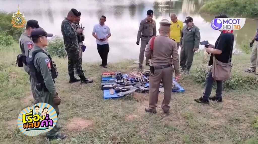 ตำรวจ สภ.นาข่า อ.เมืองอุดรธานี ได้รับแจ้งมีชาวบ้านไปหว่านแหที่ประตูระบายน้ำ อ่างเก็บน้ำหนองสำโรง หน้า สนง.ชลประทานที่ 5 บ้านหมูม่น ต.หมูม่น อ.เมือง จ.อุดรธานี แต่ชาวบ้านพบวัตถุระเบิดและอาวุธสงครามจำนวนมาก จึงประสานหน่วยเก็บกู้วัตถุระเบิดตำรวจภูธรจังหวัดอุดรธานี (EOD) รุดไปตรวจสอบที่เกิดเหตุ และรายงานผู้บังคับบัญชาทราบ ต่อมา พล.ต.ต.สันธาน อินทรจักร ผบก.ตร.ภูธร จ.อุดรธานี,พร้อมด้วย พ.ต.อ.พัฒนวงศ์ จันทร์พล ผกก.สภ.เมืองอุดรธานี และ ตร. EOD จึงเดินทางไปที่เกิดเหตุ เจ้าหน้าที่ได้ให้ชาวบ้านงมขึ้นมา ปรากฏว่าแทบช็อก เมื่อพบวัตถุระเบิดและอาวุธสงครามจำนวนมาก อาทิ เสื้อกั๊กที่ ตร.และทหารใช้ ระเบิดสังหาร เอ็ม 26 กระสุนปืนเอ็ม 16 แม็กกาซีนสั้น 6 แม็ก แม็กกาซีนยาว 2 แม็ก ซีโฟร์ 1 แท่ง เครื่องยิงลูกระเบิด 2 อัน ปืนอาก้า ทั้งหมดสภาพกลางเก่ากลางใหม่และพร้อมใช้งาน โดยเฉพาะลูกระเบิด ต่อมาเจ้าหน้าที่ทหารได้มาร่วมตรวจสอบด้วย พร้อมเก็บหลักฐานเพื่อรายงานให้ผู้บังคับบันชาทราบ โดยทางทหารตรวจสอบแล้วไม่ได้ใช้ในราชการทหาร เบื้องต้นตำรวจสันนิษฐานว่า ผู้ที่มีไว้ครอบครอง เกรงว่าจะผิดกฎหมายจึงได้นำวัตถุทั้งหมดมาทิ้งที่ประตูระบายน้ำเพราะบริเวณดังกล่าวติดถนนพอดี
