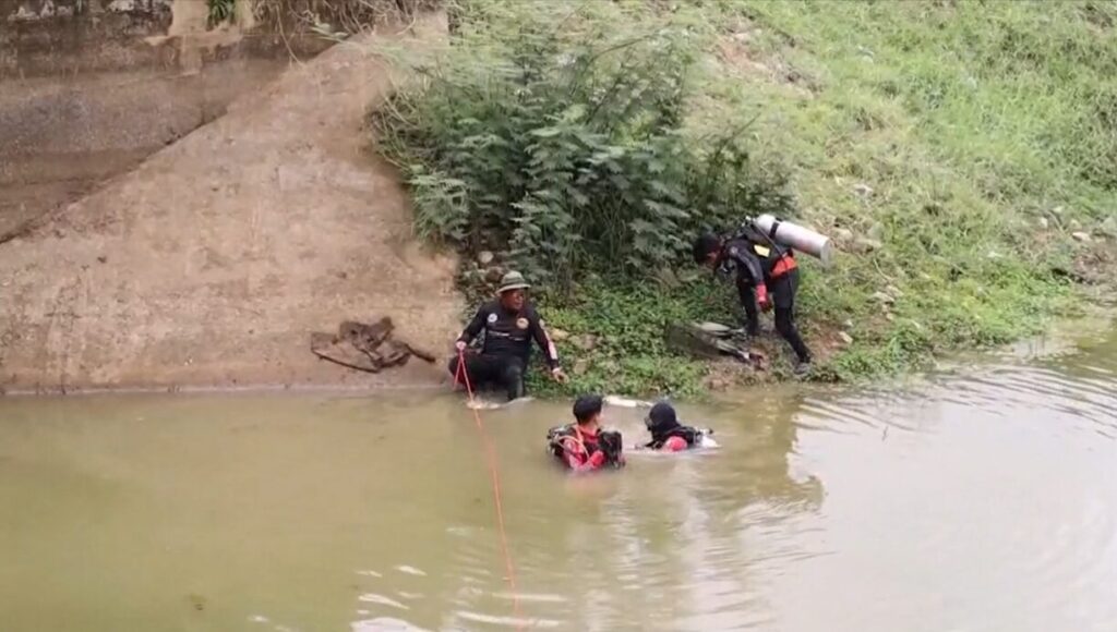 อุดรธานี 24 พ.ค. – ตำรวจประสานทีมกู้ภัยลงงมวัตถุระเบิด ผงะ! พบ M-16 เครื่องกระสุน ที่ประตูระบายน้ำอ่างน้ำหนองสำโรง จ.อุดรธานี