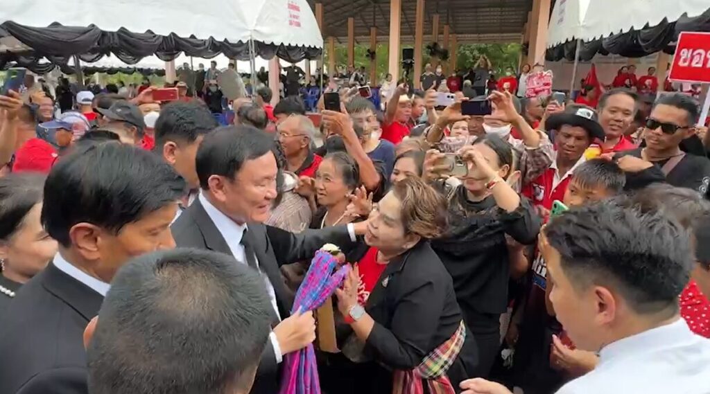 นครราชสีมา 25 พ.ค.-“ทักษิณ” เป็นประธานพิธีฌาปนกิจคนขับรถคู่ใจ ที่วัดสังฆชินาราม อ.สีดา จ.นครราชสีมา ท่ามกลางมวลชนเสื้อแดงแห่ต้อนรับ