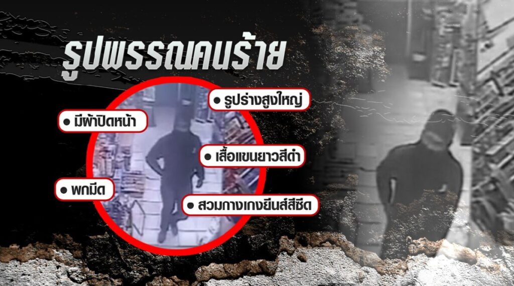 ต่อมาคนร้ายเป็นชายรูปร่างสูงใหญ่ สวมกางเกงยีนสีซีด เสื้อแขนยาวสีดำมีผ้าปิดหน้า เดินเข้ามาในร้านพร้อมกับผลักหลัง น.ส.พรพิมล พนักงานของร้านสะดวกซื้อเข้าไปในบริเวณเคาน์เตอร์ และพูดว่า “จะเอาเงินบุญเติม” แล้วรีบเข้าไปหยิบกล่องเหล็กบรรจุเงินสดที่วางอยู่บนเก้าอี้พนักงาน