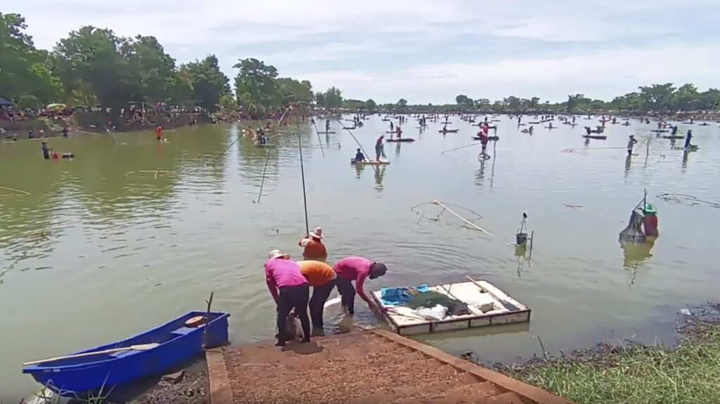 นครราชสีมา 27 พ.ค.- คึกคัก! เซียนแห เซียนยอ ร่วมล่าปลาบึกในอ่างหนองจาน ที่โคราช บางตัวใหญ่ยักษ์ น้ำหนักกว่า 40 กิโลกรัม