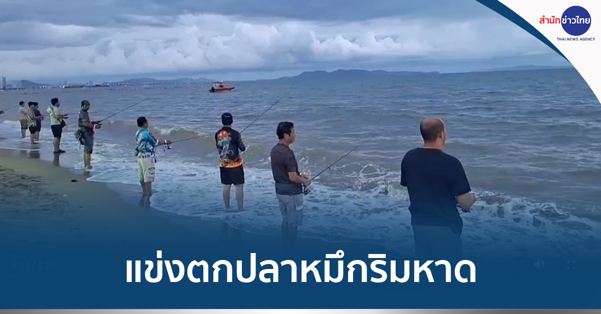 ชลบุรี 27 พ.ค.- นักท่องเที่ยวทั้งชาวไทยและต่างชาตินับร้อยคน ร่วมแข่งขันตกปลาหมึกริมชายหาดจอมเทียน