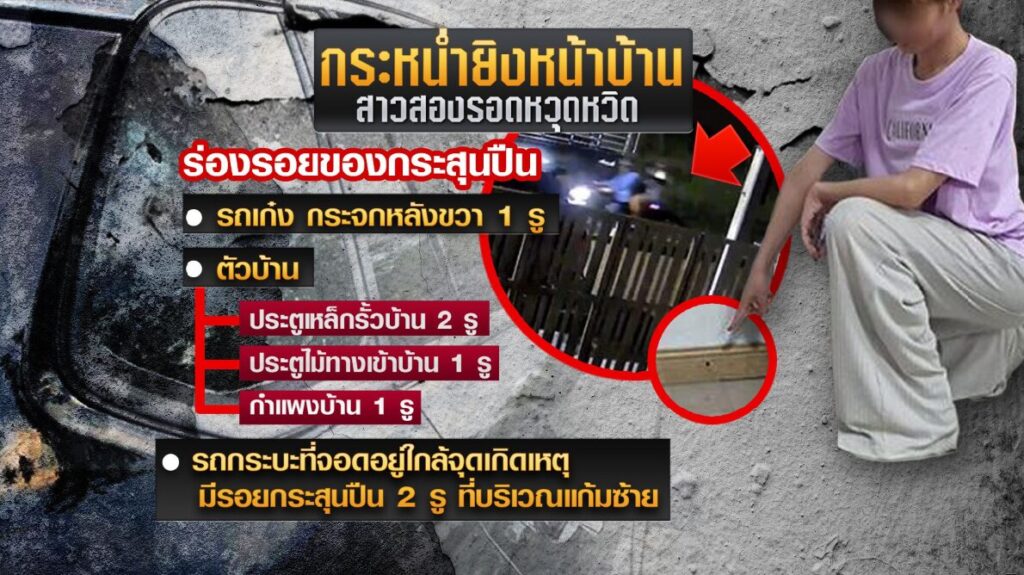 วงจรปิดบันทึกภาพ คนร้าย 2 ราย ขี่รถจักรยานยนต์มาจอดชะลอดู ก่อนวนกลับมาอีก 1 รอบ หลังจากนั้น คนซ้อนท้าย ก็ได้ใช้อาวุธปืนสั้นไม่ทราบชนิด กระหน่ำยิงเข้ามาในบ้านพักหลังหนึ่งหลายนัด กลางดึกของวันที่ 27 พฤษภาคมที่ผ่านมา