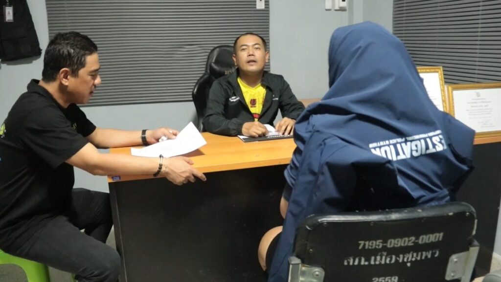 ต่อมา พ.ต.ท.สกฤชญ สุขนิตย์ รอง ผกก สส.สภ.เมืองชุมพร จึงนำกำลังเจ้าหน้าที่ตำรวจชุดสืบสวน วางแผนให้น.ส.วรา โทรศัพท์ติดต่อไปยังนายนัท มาเจอบริเวณหน้าริมถนนหน้าโรงเรียนเทศบาล 1 บ้านท่าตะเภา อ.เมือง จ.ชุมพร เพื่อเจรจาและขอชำระเงินในบางส่วนให้ ไม่นาน นายนัท ขับรถยนต์มาตามจุดนัดหมายโดยมี น.ส.วรา ยืนยันตัว เจ้าหน้าที่จึงควบคุมตัว มายัง สภ.เมืองชุมพร ซึ่งห่างเพียง 100 เมตร