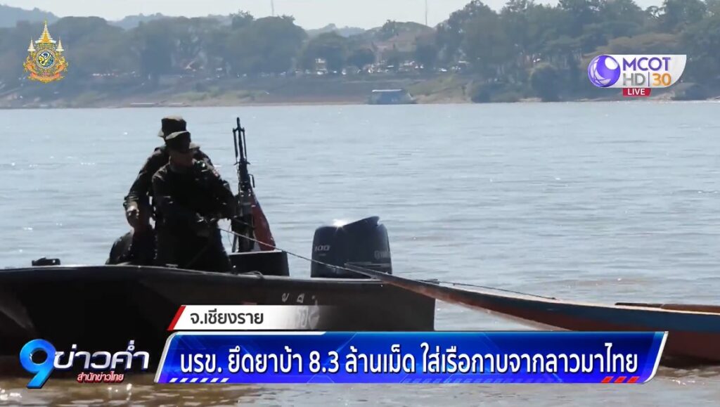เชียงราย 30 พ.ค. – หน่วยเรือรักษาความสงบเรียบร้อยตามลำแม่น้ำโขง เขตเชียงราย ยึดยาบ้า 8.3 ล้านเม็ด ในพื้นที่ อ.เชียงแสน หลังเครือข่ายยาเสพติดลักลอบลำเลียงขนใส่เรือกาบติดเครื่องยนต์ ข้ามจากฝั่งลาวเข้าไทย เตรียมกระจายในพื้นที่ภาคกลาง