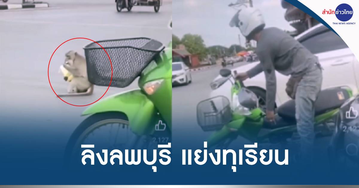 ลพบุรี 3 มิ.ย.-ลิงลพบุรี ยังอาละวาดไม่หยุด แม้ช่วงนี้มีการจัดระเบียบ ล่าสุดไปแย่งทุเรียนจากชาวบ้านที่ขี่จักรยานยนต์จอดติดไฟแดงแถมยังทำร้ายคนจนบาดเจ็บด้วย