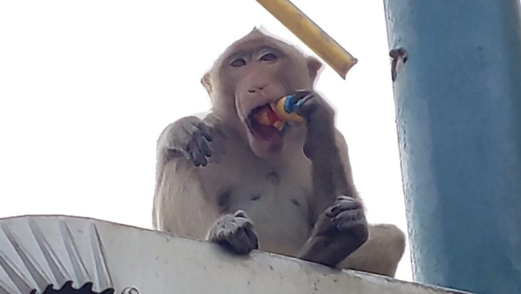 และในเวลาไล่เลี่ยกัน ก็เกิดเหตุลิงฉกตุ๊กตากับโฟโต้การ์ดศิลปินที่ชื่นชอบของน้องนักเรียนไปแทะเล่น ทำให้นักเรียนหญิงถึงกับร้องไห้ นอกจากนี้กล้องวงจรปิดยังบันทึกภาพเมื่อเย็นวันที่ 31 พฤษภาคม ลิงจำนวนมาก กระโดดแย่งเข้าเอาถุงอาหารหน้ารถของชาวบ้าน ไปได้จนหมดเกลี้ยง.-สำนักข่าวไทย