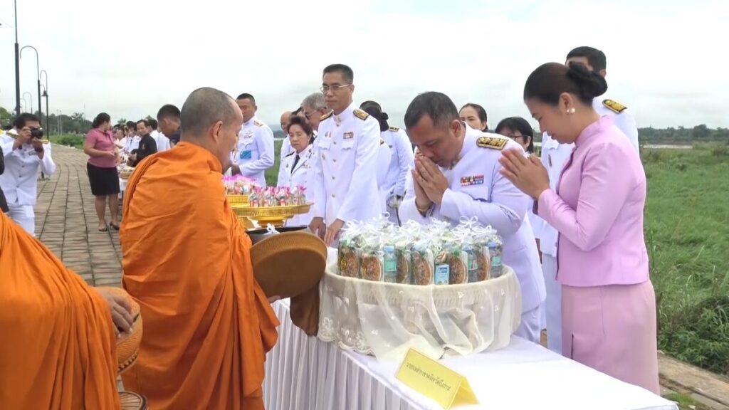 ส่วนที่บึงกาฬ บริเวณศาลาอเนกประสงค์ ถนนข้าวเม่าริมโขง เขตเทศบาลเมืองบึงกาฬ นายจุมพฏ วรรณฉัตรศิริ ผู้ว่าราชการจังหวัดบึงกาฬ นำข้าราชการ องค์กรเอกชน นักเรียน นักศึกษา และประชาชน ร่วมกันทำบุญตักบาตรข้าวสารอาหารแห้งแด่พระสงฆ์สามเณร จำนวน 47 รูป เพื่อถวายเป็นพระราชกุศล โดยพสกนิกรต่างพร้อมใจสวมใส่เสื้อผ้าโทนสีม่วงมาร่วมพิธี เพื่อแสดงออกถึงความจงรักภักดี และสำนึกในพระมหากรุณาธิคุณอันหาที่สุดมิได้