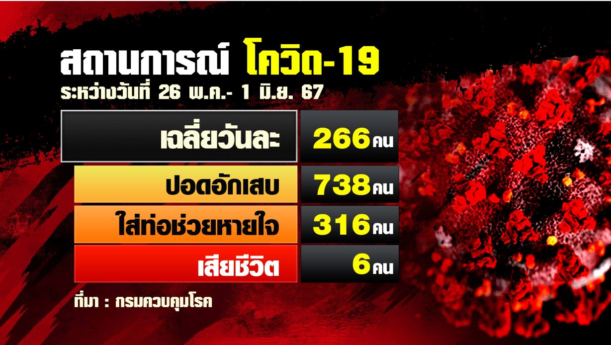5 มิ.ย. – สถานการณ์โควิด-19 ในประเทศไทย ล่าสุด กรมควบคุมโรคพบผู้ป่วยเข้ารักษาตัวในโรงพยาบาลในรอบสัปดาห์นี้เพิ่มขึ้น และเสียชีวิต 6 คน