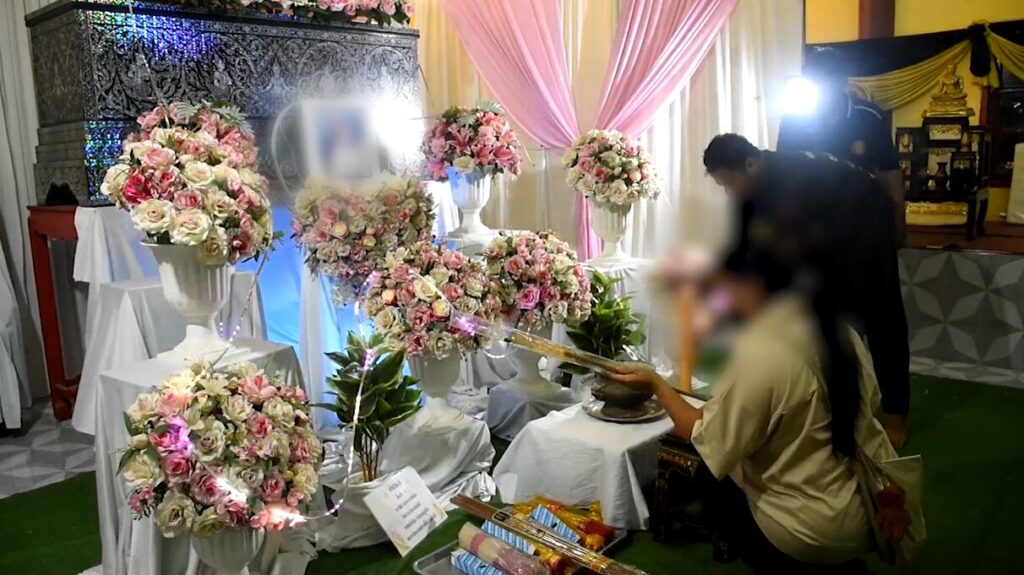 โดยก่อนหน้านี้ ครอบครัวติดต่อเข้ารับร่างของน้องหมิง จากสถาบันนิติวิทยาศาสตร์ กระทรวงยุติธรรม กลับไปประกอบพิธีทางศาสนาที่วัดบ้านเกิด และมีการเคลื่อนร่างไปทำพิธีอัญเชิญดวงวิญญาณที่จุดเกิดเหตุ ใต้ทางด่วน ต.บางพูน ก่อน และ ทันทีที่ร่างมาถึงวัด แม่ของผู้เสียชีวิต ที่นั่งมากับร่างของลูกสาว ได้ลงจากรถพร้อมกอดรูปภาพที่จัดไว้ตั้งหน้าศพ บอกลูกสาวทั้งน้ำตาว่า “แม่พาลูกมาถึงบ้านเราแล้ว นะลูก” จากนั้นพระสงฆ์ จับสายสินเดินนำหน้า อาสาสมัครกู้ภัย และญาติๆ ต่างช่วยกันยกหีบที่บรรจุร่าง เข้าภายในศาลาการเปรียญ พร้อมเปิดฝาหีบ เพื่อให้ครอบครัวและญาติได้ดู ก่อนจะยก หีบเข้าสู่โรงเย็น เพื่อประกอบพิธีตามประเพณี โดยบรรยากาศเป็นไปด้วยความโศกเศร้า