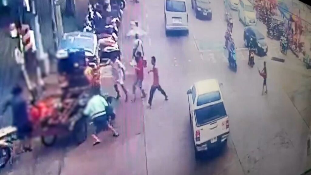กล้องวงจรปิดของเทศบาลบันทึกเหตุการณ์ไว้ได้ ขณะเกิดเหตุ มีกลุ่มชายฉกรรจ์ประมาณ 8 คน วิ่งข้ามถนน เข้ามาทำร้าย นายถนอม หรือต่าย แบบรุมยำจนลงไปนอนกองที่พื้น จากนั้นกลุ่มผู้ก่อเหตุ ได้เดินหนีข้ามถนนไปอย่างใจเย็น