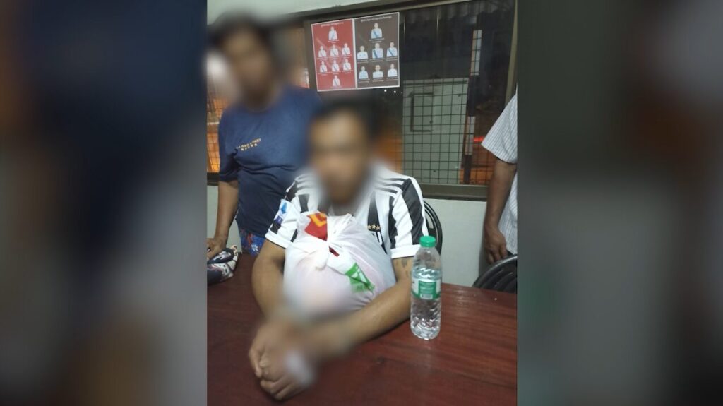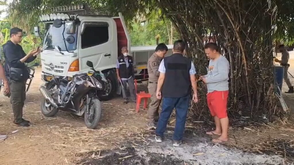 เพื่อนบ้านของ 2 สามีภรรยา ซึ่งเป็นผู้เห็นเหตุการณ์ ได้นำชี้จุดเกิดเหตุ พร้อมเล่าว่า ผู้ก่อเหตุคือนายพัน ซึ่งเป็นสามีของผู้ได้รับบาดเจ็บ คือนางพรทิพย์ อายุ 36 ปี เป็นหญิงพิการขาทั้งสองข้าง โดยขณะเกิดเหตุฝ่ายภรรยา นอนเล่นอยู่ที่เปลญวนหน้าบ้าน ต่อมานายพัน เดินเข้ามาหาและต่อว่าภรรยา จนเกิดมีปากเสียงกันขึ้นอย่างรุนแรง ฝ่ายภรรยาเห็นท่าไม่ดี จึงพยายามจะลุกขึ้นหนี โดยใช้ไม้เท้าค้ำยันตัวเอง แต่นายพันไม่ยอมหยุด หยิบขวดน้ำมันที่ติดตัวมา ราดใส่หัวภรรยาก่อนจะจุดไฟเผา จนทำให้เกิดไฟลุกท่วมทั่วทั้งตัวของฝ่ายหญิง ซึ่งส่งเสียงร้องด้วยความเจ็บปวด เนื่องจากได้รับบาดเจ็บรุนแรง มีแผลถูกไฟเผาตามร่างกายและศีรษะ ผิวหนังถลอก มีเนื้อหลุดออกมา บาดเจ็บสาหัส เพื่อนบ้านที่อยู่ใกล้กับที่เกิดเหตุ จึงรีบเข้าไปช่วยดับไฟ และแจ้งมูลนิธิให้ช่วยนำส่งโรงพยาบาล ซึ่งภายหลังเกิดเหตุ นายพัน ผู้ก่อเหตุได้โยนขวดน้ำมันทิ้ง ก่อนจะหลบหนีไป