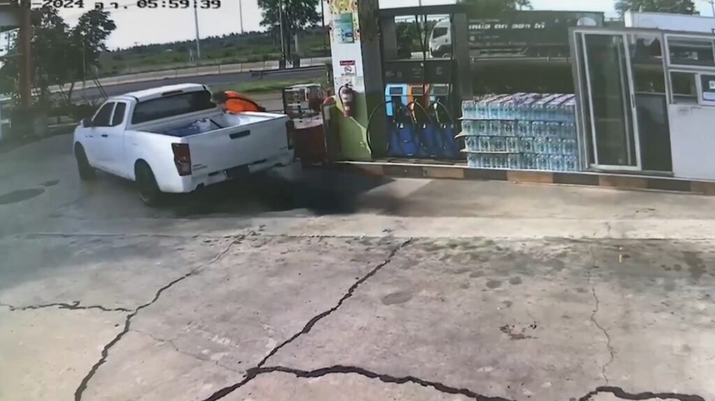 สมุทรสงคราม 19 มิ.ย. – รถกระบะเติมน้ำมันแล้วไม่จ่ายเงิน ก่อนเร่งเครื่องหนี เด็กปั๊มพยายามเกาะท้ายรถไว้ถูกสะบัดตกลงมาบาดเจ็บ ล่าสุดตำรวจตามจับตัวคนร้ายได้แล้ว