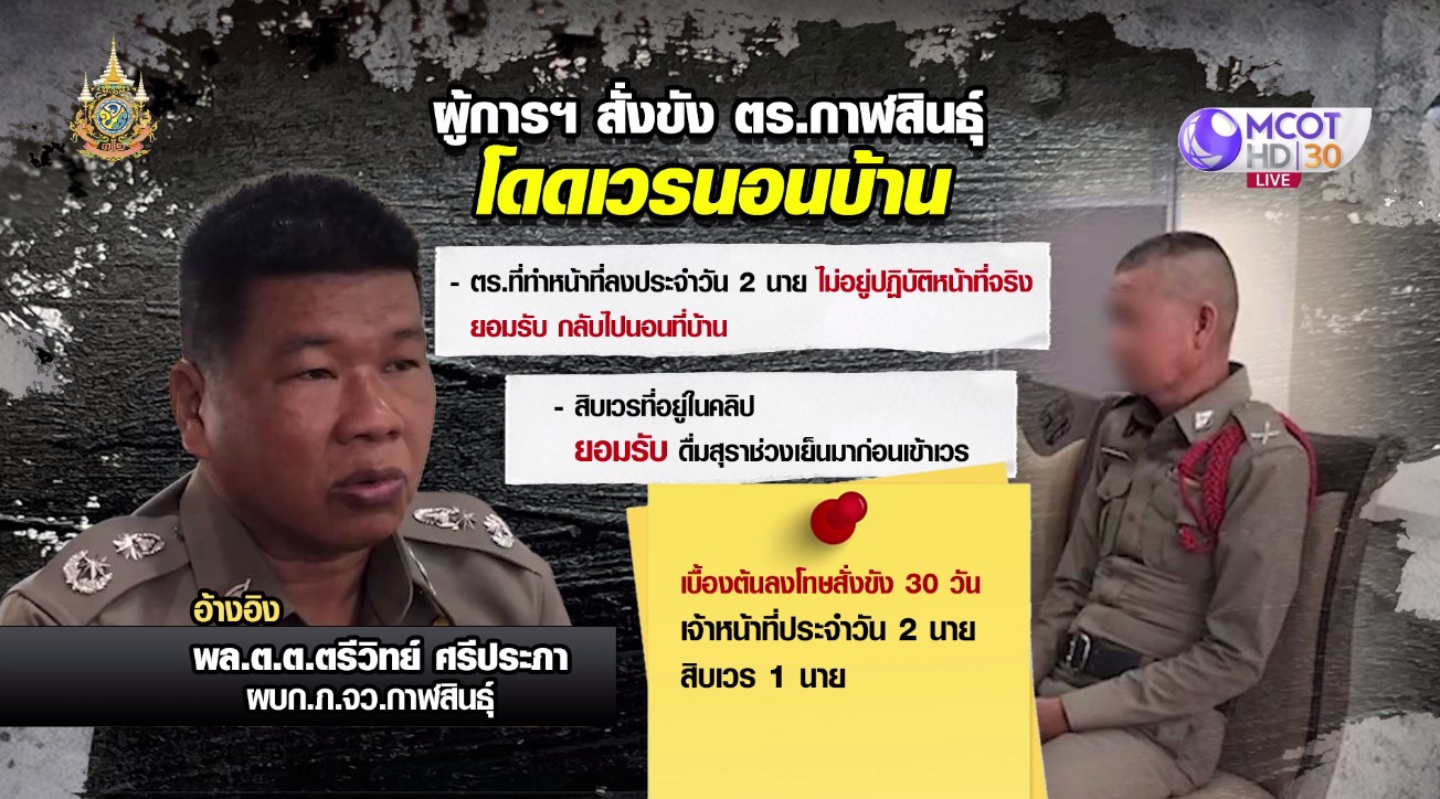 กาฬสินธุ์ 24 มิ.ย. – ผบก.ภ.จว.กาฬสินธุ์ สั่งขัง 30 วัน ตำรวจ สภ.เมืองกาฬสินธุ์ 2 นายโดดกลับบ้านไปนอน อีก 1 นาย เมาขณะเข้าเวร หลังชาวบ้านโพสต์คลิปลงโซเชียล จะเข้าแจ้งความ กลับเจอตำรวจอยู่ในอาการมึนเมา และไม่มีเจ้าหน้าที่รับแจ้ง