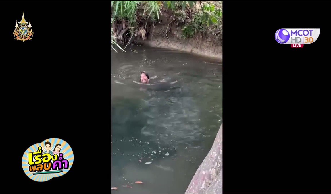 พี่โถ บอกว่า สาเหตุที่ต้องโดดน้ำลงคลอง เพราะตอนที่ชุดนี้มา กำลังนั่งตกปลาอยู่เพลินๆ พอได้ยินเสียงเรียกและเห็นตำรวจมากันหลายคนก็ตกใจ กระโดดน้ำหนีทันที เพราะอินกับภาพจำที่เวลาคนร้ายเห็นตำรวจแล้วต้องหนี พอเจอของจริงก็เลยหนีก่อน และบอกว่า ชอบการทำงานของทีมช้างศึกสองเลชุดนี้มาก