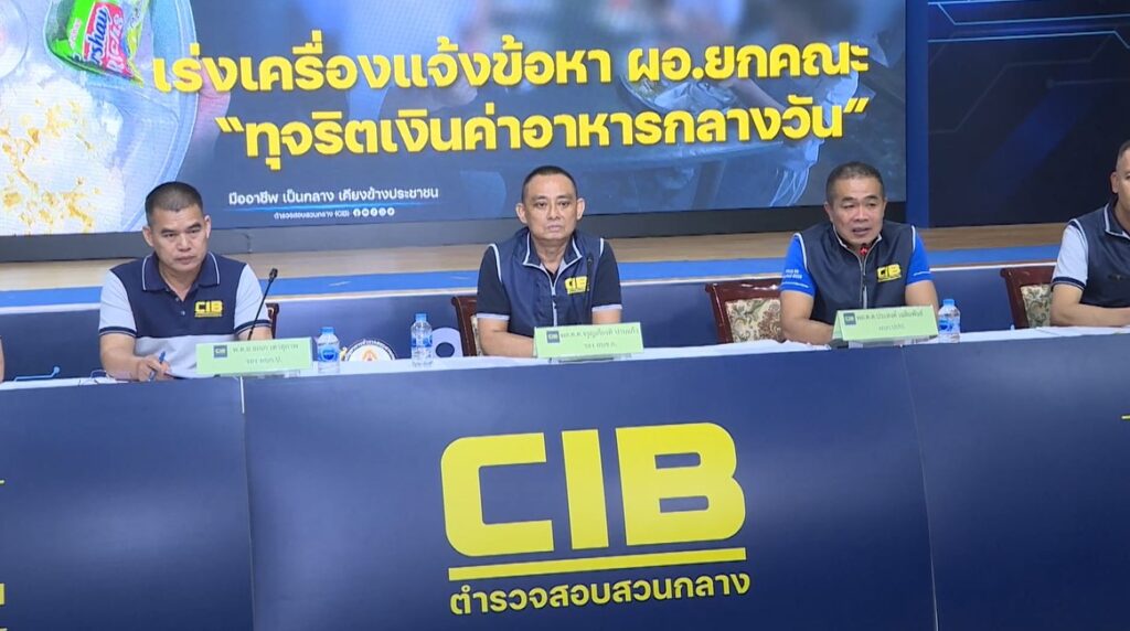 ความคืบหน้าคดีทุจริตค่าอาหารกลางวันโรงเรียนดังใน อ.หาดใหญ่ จ.สงขลา วันนี้ พล.ต.ต.จรูญเกียรติ ปานแก้ว รองผู้บัญชาการตำรวจสอบสวนกลาง พร้อมด้วย พล.ต.ต.ประสงค์ เฉลิมพันธ์ ผู้บังคับการป้องกันและปราบปรามการทุจริตและประพฤติมิชอบ เปิดแถลงข่าวล่าสุดจับกุมและแจ้งข้อกล่าวหาผู้ต้องหาจำนวน 4 ราย ประกอบด้วย 1.นายเอ (นามสมมติ) อายุ 56 ปี ผู้อำนวยการโรงเรียน 2.นางบี (นามสมมติ) อายุ 55 ปี รองผู้อำนวยการโรงเรียน 3.นางซี (นามสมมติ) อายุ 64 ปี รองผู้อำนวยการโรงเรียน และ 4.นางดี (นามสมมติ) อายุ 65 ปี หัวหน้าฝ่ายบริหารงานงบประมาณ โดยกล่าวหา “ร่วมกันยักยอก และร่วมกันปลอมและใช้เอกสารสิทธิปลอม” (ป.อาญา ม.352, 265, 83)