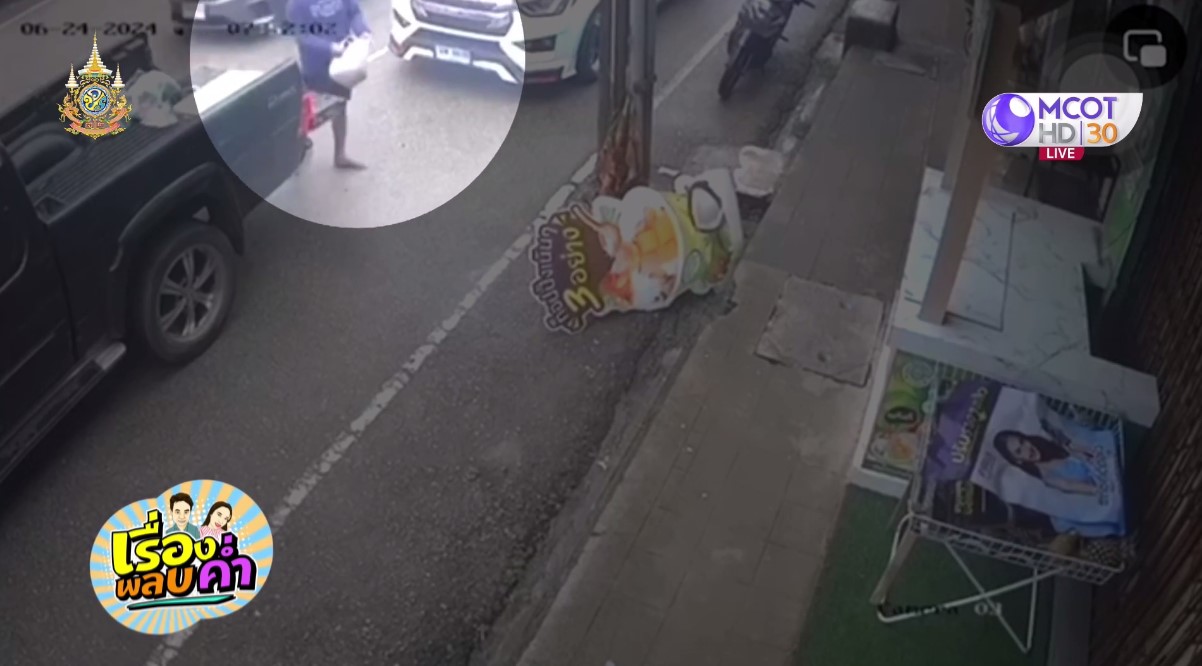 กล้องวงจรปิดของพลเมืองดี บันทึกภาพคนร้ายตระเวนขโมยของที่ตลาดสดเทศบาลตำบลย่านตาขาว อ.ย่านตาขาว จ.ตรัง เป็นชายอายุประมาณ 40-44 ปี ทำทีเดินด้อมๆ มองๆ วนเวียนอยู่ท้ายรถกระบะคันนี้ ซึ่งมีสิ่งของและอาหารที่ซื้อไว้วางอยู่หลายอย่าง ก่อนที่ชายคนนี้จะอาศัยจังหวะหยิบกุ้งสดไป 1 ถุง