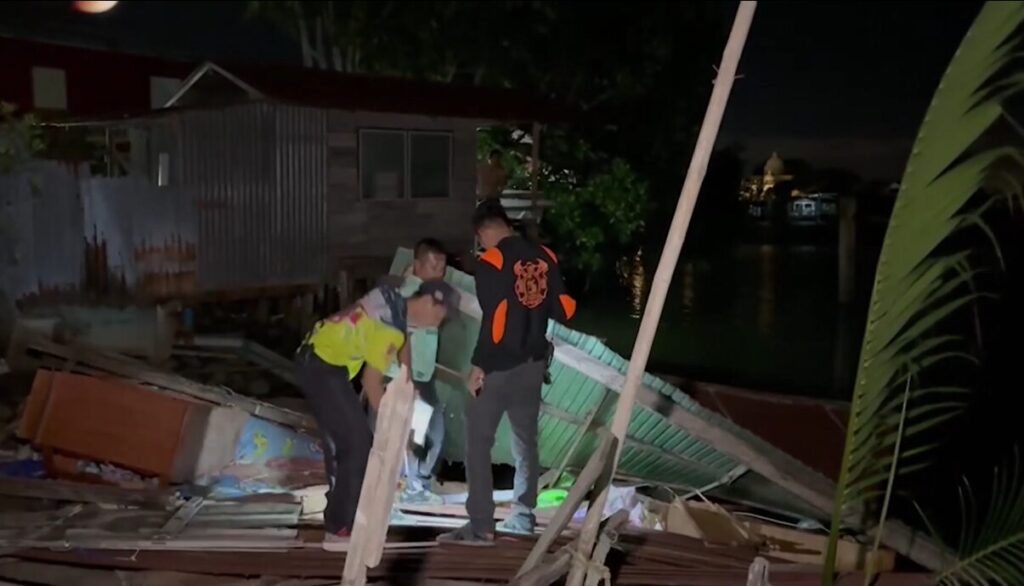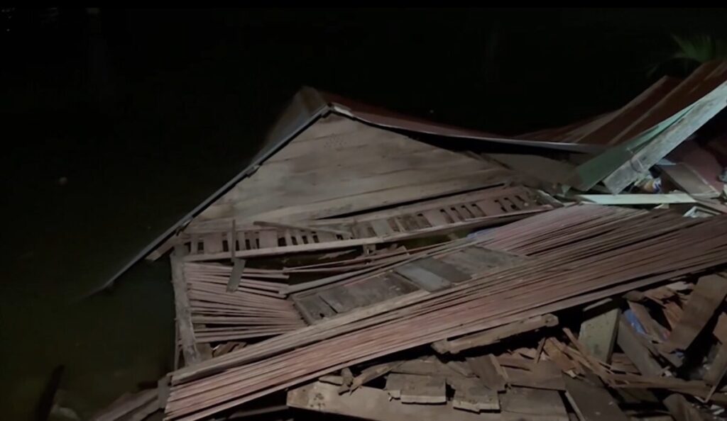 สมุทรสงคราม 30 มิ.ย.-เหตุระทึกที่สมุทรสงคราม บ้านทั้งหลังพังถล่มลงไปในแม่น้ำแม่กลอง เจ้าของบ้านได้รับบาดเจ็บที่ศีรษะและโดนไฟดูด เพื่อนบ้านเร่งช่วยเหลือนำตัวส่งโรงพยาบาล