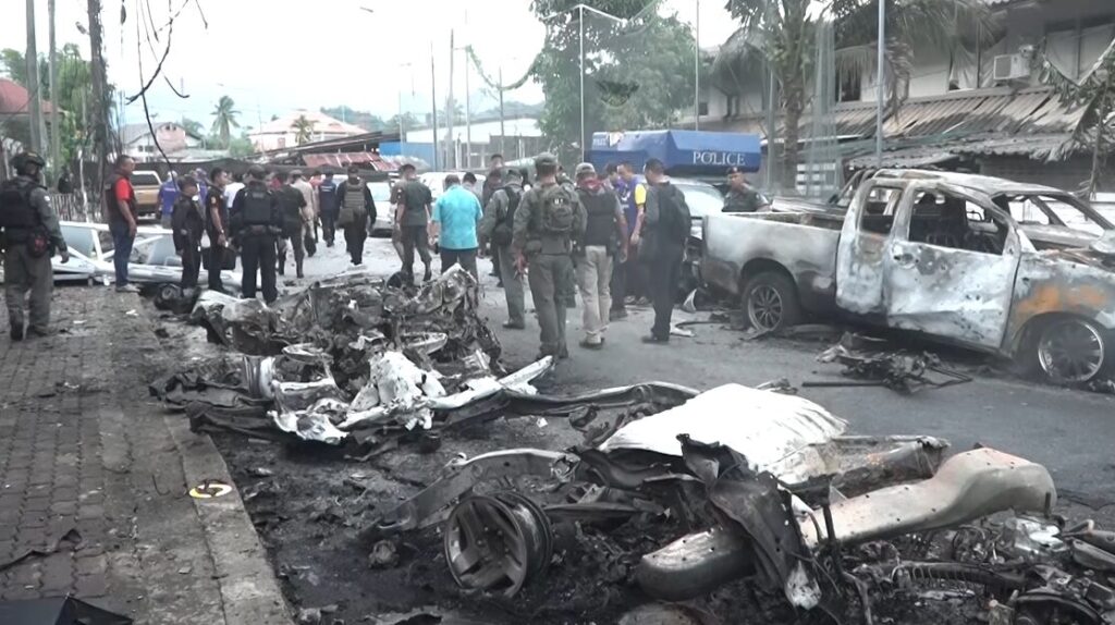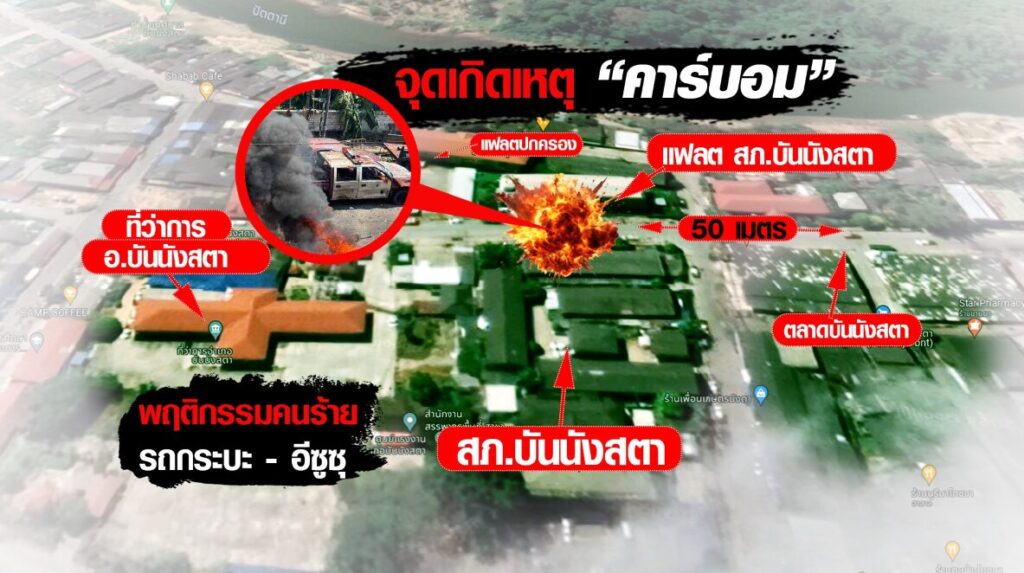 ยะลา 30 มิ.ย. – คุมตัวผู้ต้องสงสัยก่อเหตุคาร์บอมบ์หน้าแฟลตตำรวจบันนังสตา แล้ว 1 ราย หลังพบมีส่วนเกี่ยวข้องกับการนำรถของทางการไปใช้ประกอบระเบิดครั้งนี้