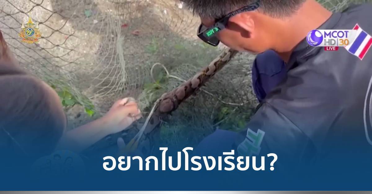 ฉะเชิงเทรา 1 ก.ค. – แตกตื่นทั้งโรงเรียน งูเหลือมยาว 3 เมตร เลื้อยจากป่าจะเข้าไปในโรงเรียน แต่ดันติดตาข่ายที่โรงเรียนขึงไว้ ไปต่อไม่ได้ นักเรียนเดินมาเจอ บอกครูรีบโทรแจ้งกู้ภัยมาจับปล่อยคืนธรรมชาติ