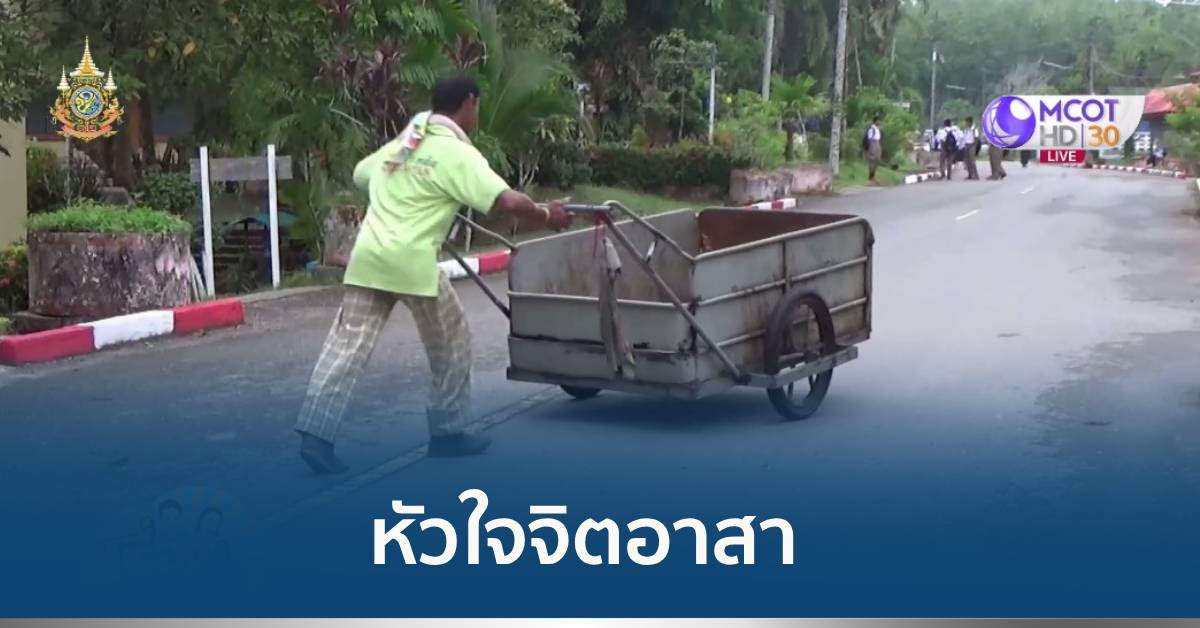 ที่โรงเรียนท่าแพผดุงค์วิทย์ ต.แประ อ.ท่าแพ จ.สตูล ทุกๆ เช้า สิ่งที่คุณครูและนักเรียนได้เห็นเป็นประจำ คือ ภาพของหนุ่มพิการคนหนึ่งเดินเปิดประตูห้องเรียนทุกชั้นและใช้รถเข็นเดินเก็บขยะภายในโรงเรียน