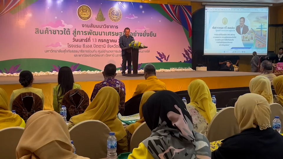 ด้าน พันตำรวจโท วรรณพงษ์ คชรัตน์ เลขาธิการ ศอ.บต. กล่าวว่า การจัดสัมมนาโครงการ “สินค้าชาวใต้ มุ่งสู่การพัฒนาเศรษฐกิจอย่างยั่งยืน” เป็นความร่วมมือระหว่างมหาวิทยาลัยสุโขทัยธรรมาธิราช ศูนย์อำนวยการบริหารจังหวัดชายแดนภาคใต้ และพาณิชย์จังหวัดในเขตพื้นที่จังหวัดชายแดนภาคใต้ จัดขึ้นเพื่อพัฒนาทักษะและความรู้ของผู้ประกอบการวิสาหกิจชุมชน ส่งเสริมการพัฒนาเศรษฐกิจของสามจังหวัดชายแดนภาคใต้ และสร้างความเข้มแข็งให้กับชุมชนท้องถิ่น ผ่านการพัฒนาผลิตภัณฑ์และการสร้างแบรนด์ที่มีคุณภาพในอันที่จะพัฒนาพื้นที่จังหวัดชายแดนภาคใต้ ซึ่งเป็นพื้นที่ที่มีอัตลักษณ์และความสมบูรณ์ของทรัพยากรและวัฒนธรรม