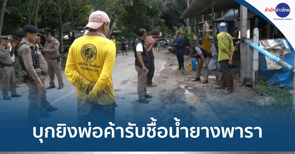 พัทลุง 13 ก.ค. – 2 คนร้าย ขี่รถจักรยานยนต์สวมหมวกกันน็อก บุกยิงพ่อค้ารับซื้อน้ำยางพาราได้รับบาดเจ็บ ส่วนลูกน้องเอาตัวเข้าบังกระสุนแทน เสียชีวิตระหว่างนำส่งโรงพยาบาล