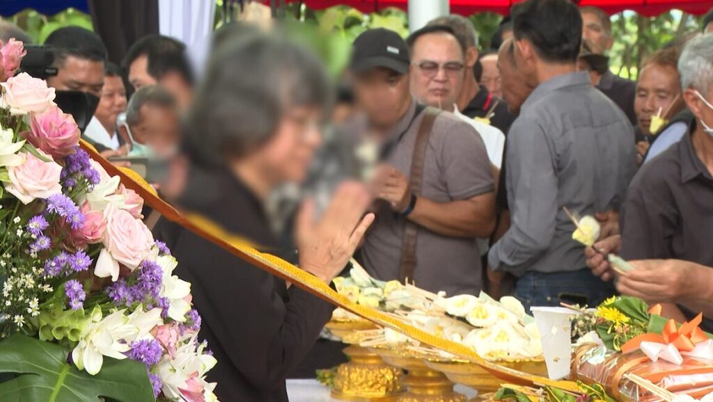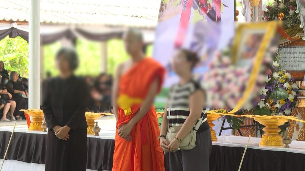 ในพิธีมีลูกชายวัย 15 ปี บวชหน้าไฟเพื่ออุทิศส่วนกุศลให้กับดวงวิญญาณของพ่อ รวมทั้งแม่ของผู้เสียชีวิตวัย 79 ปี ได้เดินทางมาส่งลูกชายเป็นครั้งสุดท้าย หลังจากไม่เคยไปร่วมพิธีบำเพ็ญกุศลศพเพราะทำใจไม่ได้ ส่วนป้าที่ป่วยติดเตียงญาติยังไม่กล้าบอกความจริงเพราะเกรงอาการป่วยจะทรุดหนัก