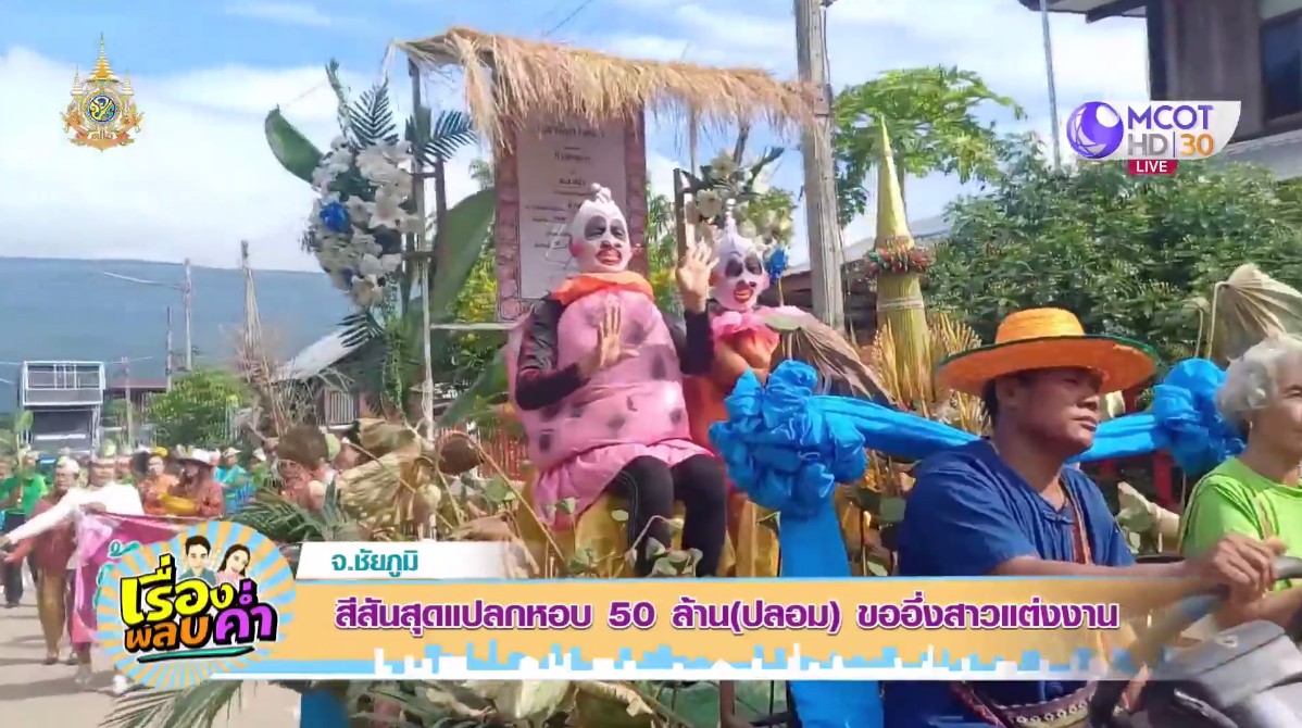 ชัยภูมิ 16 ก.ค. – สีสันสุดแปลก ชัยภูมิจัดขบวนแห่ขันหมาก แต่งงานอึ่งอ่าง สินสอด 50 ล้าน ทอง 20 บาท คืนความรักสู่ธรรมชาติ หวังฟื้นฟูป่าชุมชน
