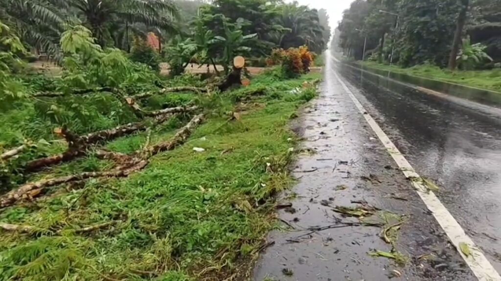 ทั้งนี้ ผู้สื่อข่าวเดินทางไปดูพื้นที่เกิดเหตุพบต้นว่ามีต้นไม้หางนกยูงขนาดใหญ่หักโค่นขึ้นมาทั้งราก มีร่องรอยที่เจ้าหน้าที่เข้ามาตัดแต่งกิ่งที่ขวางถนน.-สำนักข่าวไทย
