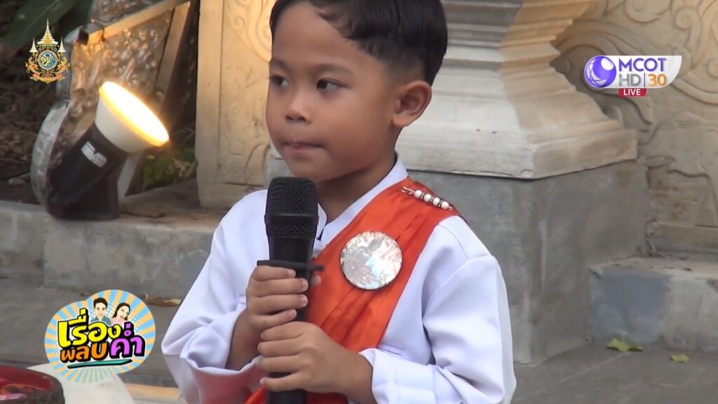 อาจารย์สวรรค์ แคล้วไทธง ประชาสัมพันธ์ วัดศรีสุพรรณ บอกว่า มีโอกาสไปร่วมงานบวงสรวงที่สำนักสงฆ์ลั๊วะ 14 หลังคา บ้านผาแตก ต.ท่าข้าวเปลือก อ.แม่จัน จ.เชียงราย เมื่อ 3 ปีก่อน และพบกับน้องโอม ขณะนั้นน้องโอมอายุแค่ขวบกว่าๆ ยังไม่ถึง 2 ขวบ แต่งกายด้วยชุดขาวมาร่วมงานกับคุณแม่ เมื่อน้องเจอกับอาจารย์ก็เดินตรงเข้ามาหา ขอให้เจิมหน้าผาก และขอฝากตัวเป็นศิษย์ หลังจากนั้นตนจึงอัดคลิปเสียงท่องบทสวดส่งไปให้น้องโอมผ่านทางอินบ็อกเฟซบุ๊ก และพี่สาวน้องโอมช่วยโหลดไปให้น้องโอมนำไปท่อง