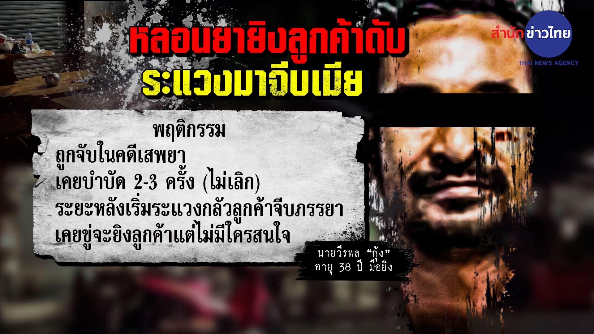 สงขลา 29 ก.ค.- สามีเจ้าของร้านน้ำชาหลอนยา หึงหวงระแวงกลัวลูกค้าจะมาจีบเมีย คว้าปืนยิงลูกค้าดับ ก่อนวิ่งหนีเข้าป่าหลังบ้านหายไป ตำรวจเร่งติดตามจับกุมตัว