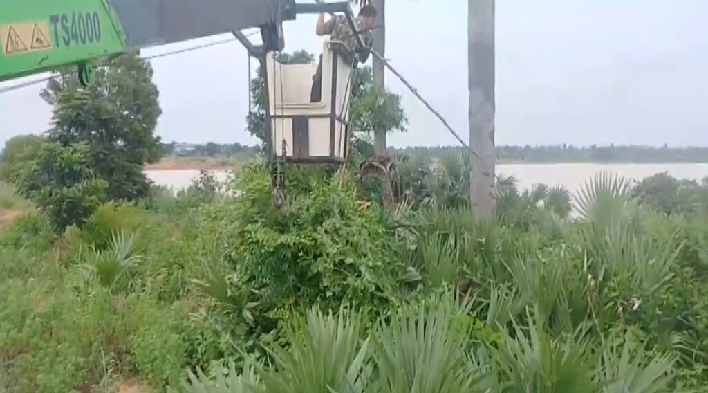 ภาพขณะเจ้าหน้าที่เขตรักษาพันธุ์สัตว์ป่าดงใหญ่ จ.บุรีรัมย์ พร้อมทีมสัตวแพทย์ อบต. ผู้ใหญ่บ้าน และชาวบ้านกว่า 50 คน ช่วยกันไล่ต้อนและปิดล้อมพื้นที่ใกล้กับอ่างเก็บน้ำของมหาวิทยาลัยราชภัฏบุรีรัมย์ สาขาอำเภอปะคำ หลังได้รับแจ้งจากชาวบ้านว่าพบหมีควายป่าอยู่บริเวณดังกล่าว