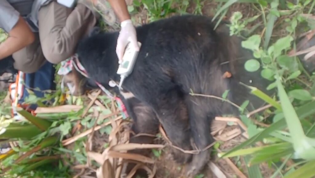 จากการตรวจสอบพบว่าหมีควายตัวนี้เป็นเพศผู้ อายุประมาณ 8 ปี น้ำหนักประมาณ 80 กิโลกรัม น่าจะออกมาจากเขตป่าสงวนแห่งชาติดงใหญ่ จากข้อมูลพบว่าเมื่อปีที่ผ่านมามีหมีควายออกมาหากินใกล้กับบริเวณที่พบในครั้งนี้ แต่ครั้งก่อนเป็นหมีขนาดเล็ก จึงแจ้งประชาสัมพันธ์ให้ชาวบ้านที่พบหมีควายให้รีบแจ้งเจ้าหน้าที่ทันที เพื่อดำเนินการผลักดันกลับเข้าป่า ป้องกันไม่ให้เกิดอันตรายทั้งกับคนและสัตว์ป่า.-สำนักข่าวไทย