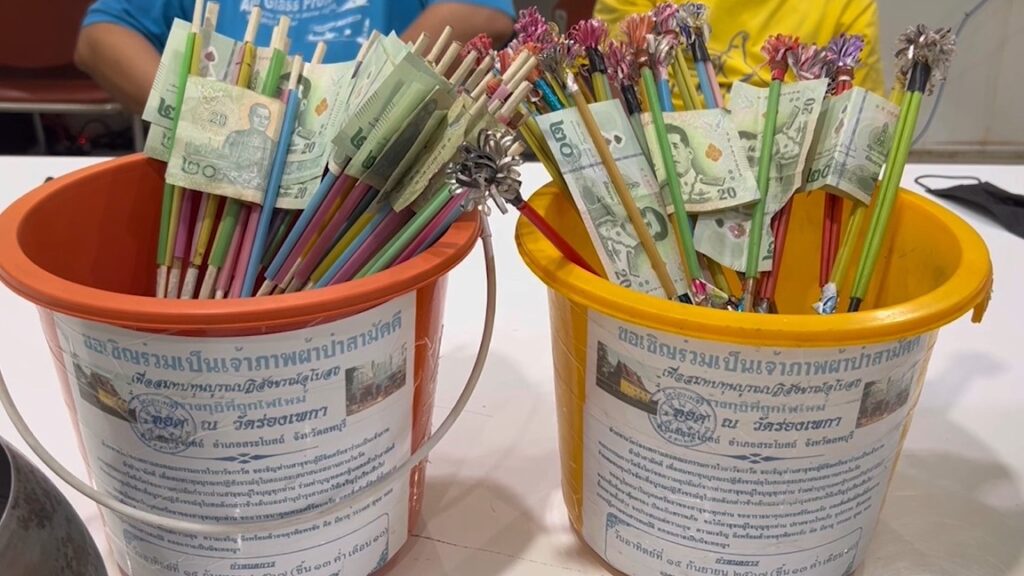 ทั้งนี้ นายสมชาย คนขับรถ เปิดเผยว่า รู้จักกับนายดิน ซึ่งเป็นไวยาวัจกรของวัดร่องเพกา มานานแล้ว มาขอให้ช่วยนำถังผ้าป่าสามัคคีสมทบทุนบูรณปฏิสังขรณ์อุโบสถวัดที่ถูกไฟไหม้เสียหายทั้งหลัง ไปกระจายบุญที่ไหนก็ได้ เพื่อนำรายได้ไปบูรณะโบสถ์ ส่วนค่าจ้างให้ตนหักค่าน้ำมันกับค่าข้าวในแต่ละมื้อ ซึ่งมีทีมงาน 3 คน สัปดาห์หนึ่งจะออกมาเรี่ยไรเฉลี่ย 2-3 วัน ช่วงประมาณ 08.00-13.00 น. หากครบ 3,000 บาท จะโอนให้นายดิน ซึ่งจะเป็นคนจัดการโอนเข้าวัดเอง เรื่องนี้เจ้าอาวาสวัดทราบ
