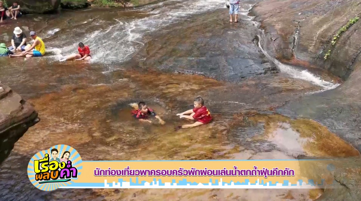 บึงกาฬ 2 ส.ค. – นักท่องเที่ยวพาครอบครัวพักผ่อนเล่นน้ำตกถ้ำฝุ่น สัมผัสธรรมชาติในเขตรักษาพันธุ์สัตว์ป่าภูวัว จ.บึงกาฬ บรรยากาศคึกคัก