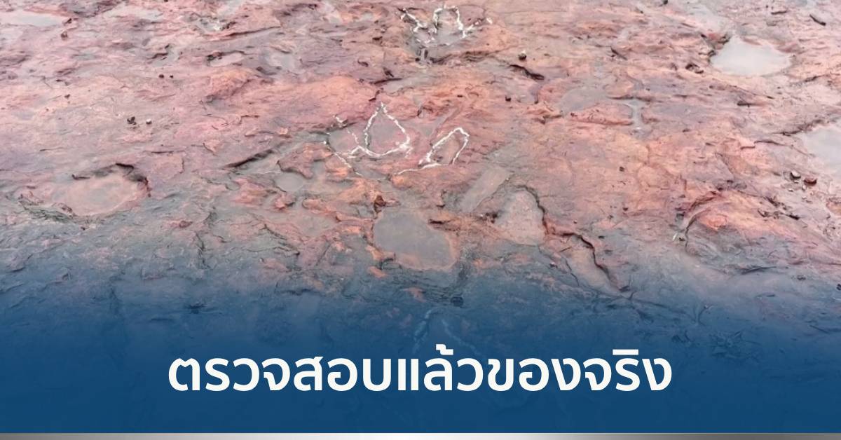 ผลตรวจสอบเบื้องต้น จากกรมทรัพยากรธรณี พบว่าเป็นรอยเท้าไดโนเสาร์จริง ประทับอยู่บนลานหินทรายและหินโคลน จัดอยู่ในหมวดหินภูพาน ยุคครีเทเชียสตอนต้น อายุ 120 ล้านปีก่อน กระจายอยู่บนพื้นที่ประมาณ 2,500 ตารางเมตร รอยเท้าไดโนเสาร์ที่พบมีจำนวนมากกว่า 10 รอย และแสดงเป็นแนวทางเดิน จำนวนอย่างน้อย 2 แนว ส่วนใหญ่เป็นรอยเท้าของไดโนเสาร์กินเนื้อ เดินสองขา กลุ่มเทอโรพอดขนาดกลางถึงขนาดใหญ่ แสดงรอยประทับของของนิ้วตีนข้างละสามนิ้วชัดเจน