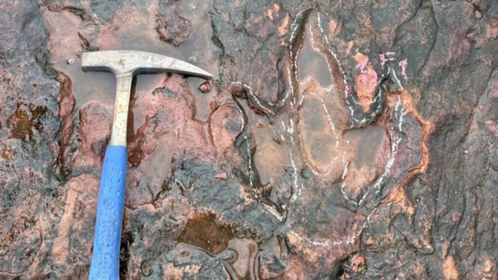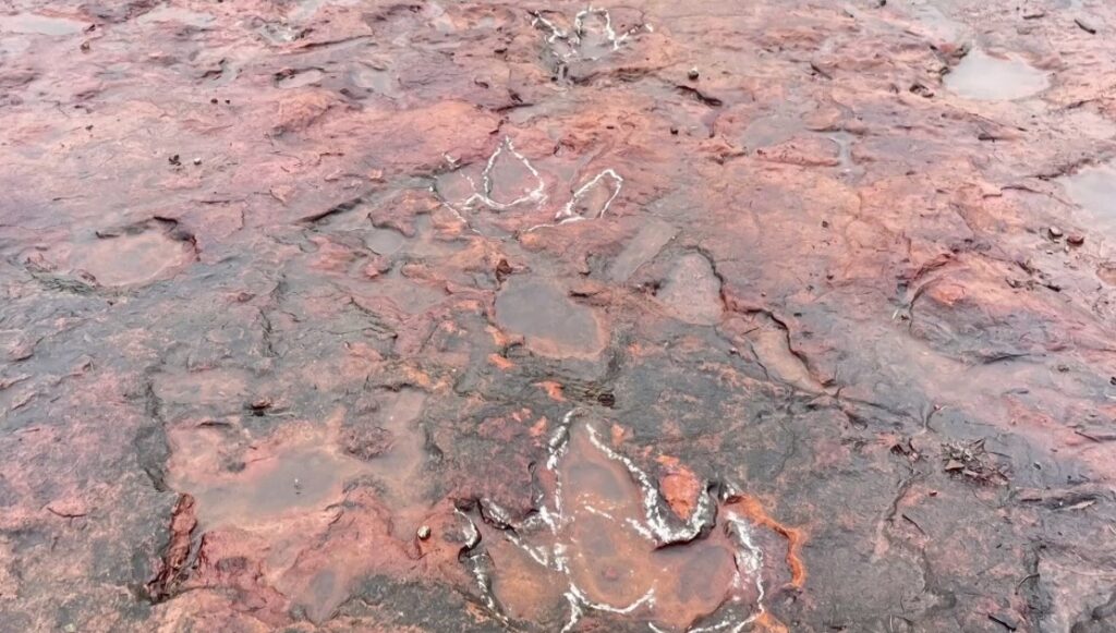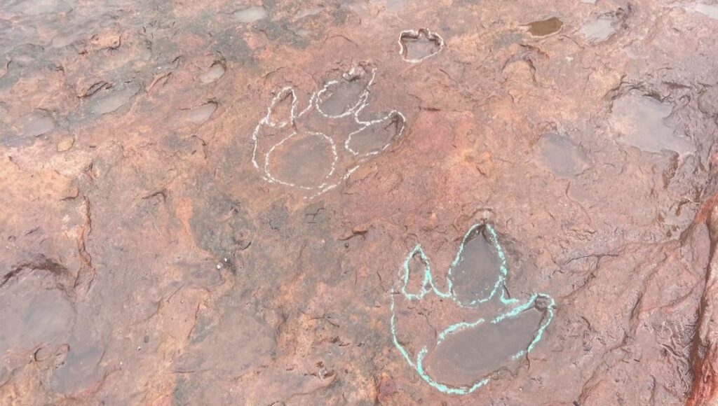พิษณุโลก 3 ส.ค. – กรณีสื่อสังคมออนไลน์ แชร์ภาพร่องรอยบนลานหินลักษณะคล้ายรอยเท้าไดโนเสาร์ ในอุทยานแห่งชาติภูหินร่องกล้า จ.พิษณุโลก หลังจากครอบครัวนักท่องเที่ยวที่ชื่นชอบการสำรวจ พบรอยเท้าปริศนานี้เมื่อปี 2563 และจากการตรวจสอบของคณะเจ้าหน้าที่ ยืนยันเป็นรอยเท้าไดโนเสาร์ ยุคครีเทเชียสตอนต้น อายุ 120 ล้านปีก่อน