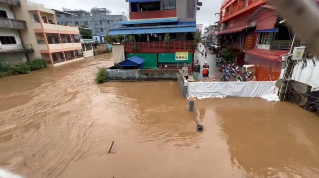 พิจิตร 3 ส.ค. – มวลน้ำสะสมจากฝนตกหนักต่อเนื่อง ที่พิจิตร กัดเซาะถนนคันคลองประตูระบายน้ำคลองหนองตอขาด ส่วนที่เชียงราย น้ำท่วมตลาดสายลมจอย ต้นไม้ล้มทับบ้าน