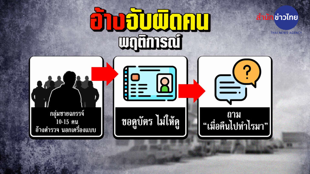 ผู้ใช้เฟซบุ๊กรายหนึ่งโพสต์ข้อความ “เหตุการณ์เกิดขึ้นเมื่อวานเย็นฉัน และครอบครัวไปตลาดและพาพ่อไปล้างแผลไปจอดรอพ่อที่ตลาดหน้าหมู่บ้าน อยู่ดีๆ มีตำรวจนอกเครื่องแบบประมาณ 15 คน ล้อมจับแฟนฉันและลุงคนชี้ตัวบอกว่าแฟนฉันคือคนร้าย ผ่านไป 5-10 นาที มีตำรวจเดินมาขอโทษ แต่ลุงคนชี้ตัวหายไป ลูกเด็ก 10 ขวบก็อยู่ในเหตุการณ์ คนก็มามองเหมือนเราเป็นคนผิด อายค่ะ แบบนี้จะทำอะไรได้บ้าง”