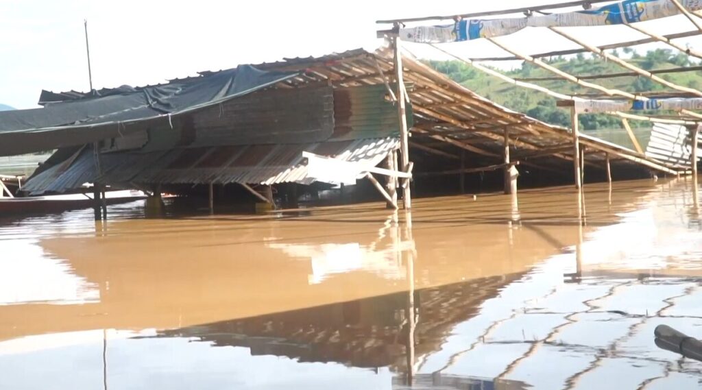 น้ำโขงขึ้นคืนเดียว 2 เมตร ท่วมร้านค้าหาดนางคอย
