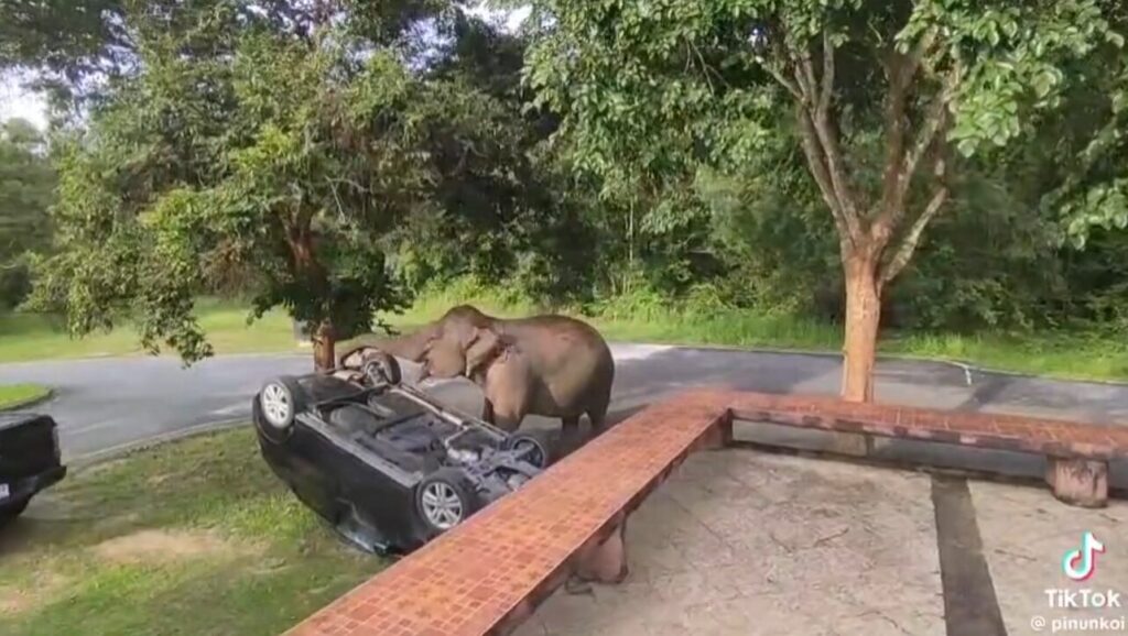 ในโลกออนไลน์แห่แชร์คลิปวิดีโอของผู้ใช้ Tiktok รายหนึ่ง เป็นภาพครอบครัวช้างป่ากำลังใช้งวงพลิกรถเก๋งสีดำที่จอดอยู่ภายในอุทยานแห่งชาติเขาใหญ่จนพลิกคว่ำ ล่าสุดผู้สื่อข่าวได้สอบถามไปยังศูนย์บริการนักท่องเที่ยว อุทยานแห่งชาติเขาใหญ่ เปิดเผยว่า กรณีดังกล่าวเกิดขึ้น เพราะนักท่องเที่ยวประกอบอาหารรับประทาน ช้างทั้ง 4 เดินผ่านมาตามกลิ่น แต่หาไม่พบ เมื่อเจอรถคันดังกล่าวจอดอยู่ คิดว่ามีอาหาร จึงพยายามค้นหา แต่ไม่พบ จึงพลิกรถหา เมื่อหาไม่เจอก็เกิดความโกรธทำลายรถนักท่องเที่ยว