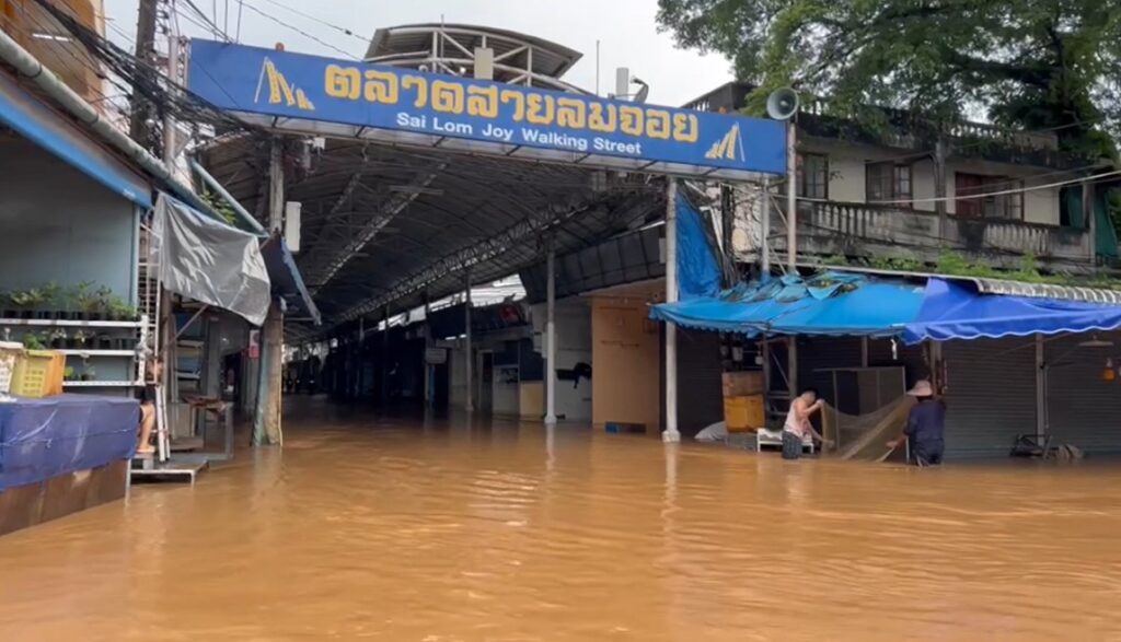 ที่ จ.เชียงราย น้ำในแมน้ำสายทะลักเข้าท่วมชุมชนชายแดนด้าน อ.แม่สาย โดยเฉพาะตลาดสายลมจอย พื้นที่เศรษฐกิจการค้าชายแดนชื่อดังของจังหวัด น้ำจากบริเวณใต้สะพานเข้าท่วมปากทางเข้า และทะลักเข้าไปบนถนน ภายในตลาดตลอดแนว ส่งผลให้พ่อค้าแม่ค้าพากันขนสินค้าขึ้นไปไว้บนที่สูง ส่วนใหญ่ขนย้ายได้ทัน เพราะมีประสบการณ์ถูกน้ำท่วมติดต่อกันมาแล้วหลายครั้ง ซึ่งรอบนี้นับเป็นรอบที่ 3 ของปีนี้