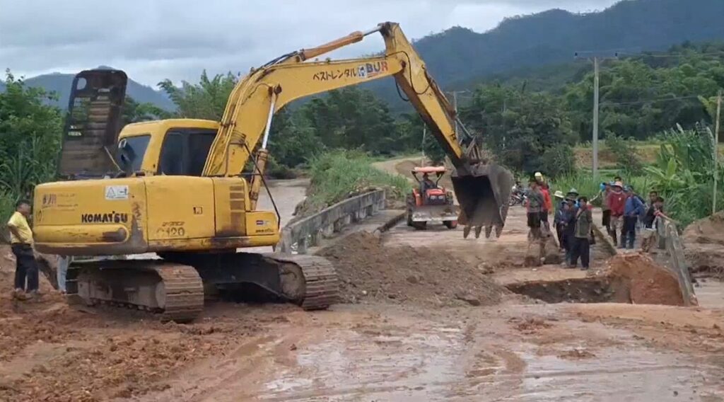 แม่ฮ่องสอน 14 ส.ค. – ภาคเหนืออ่วม น้ำป่าทะลักท่วมตลาดชายแดน อ.แม่สาย ขณะที่ จ.แม่ฮ่องสอน เจ้าหน้าที่เร่งเปิดเส้นทางเข้าบ้านแม่โกปี่ อ.ขุนยวม หลังดินสไลด์ทับเส้นทาง สะพานทรุดเสียหายหนัก