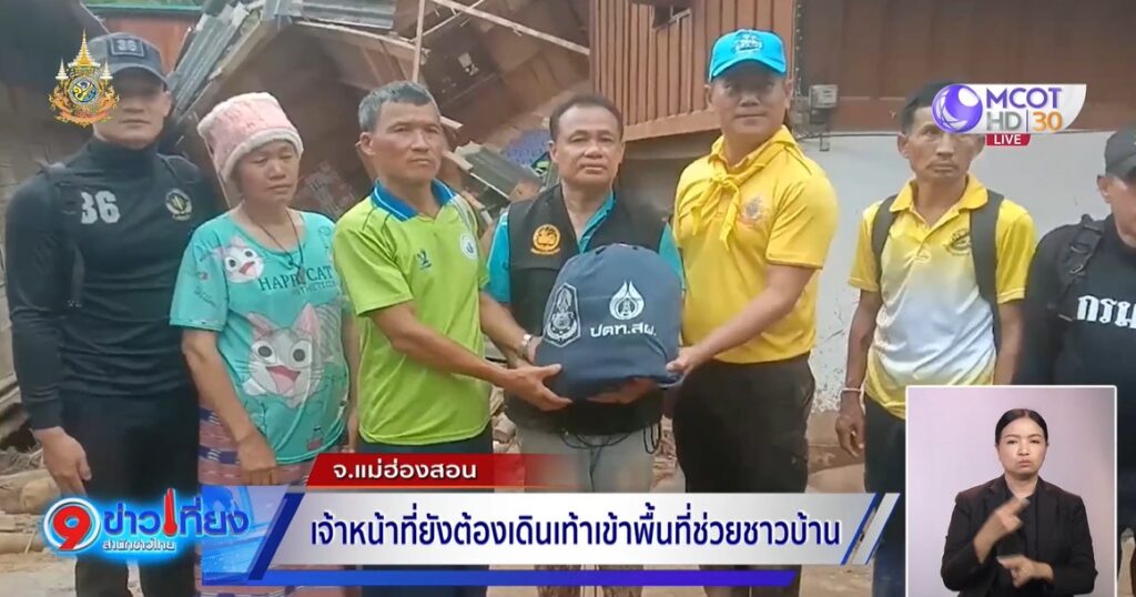 แม่ฮ่องสอน 15 ส.ค. – เจ้าหน้าที่ยังคงเดินหน้าลุยเข้าพื้นที่ช่วยเหลือประชาชนที่ประสบอุทกภัยบ้านแม่โกปี่ อ.ขุนยวม จ.แม่ฮ่องสอน ซึ่งยังคงต้องอาศัยการเดินทางเท้าข้ามดินสไลด์ ลุยโคลน ข้ามลำห้วย
