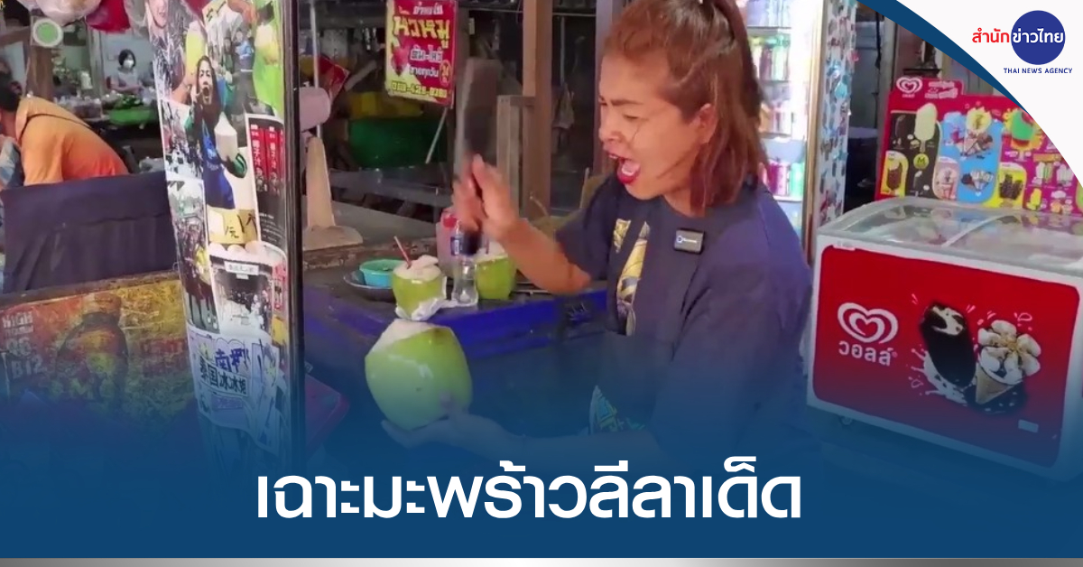 สมุทรสงคราม 23 ส.ค. – ลีลาเด็ดสุดมัน การเฉาะมะพร้าวของแม่ค้าในตลาดร่มหุบ จ.สมุทรสงคราม ถึงขนาดถูกเชิญไปโชว์ที่เมืองจีน