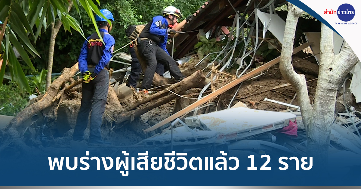 ภูเก็ต 24 ส.ค.- พบร่างผู้เสียชีวิตแล้ว 12 ราย เหตุดินสไลด์ จ.ภูเก็ต เจ้าหน้าที่ระดมกำลังเร่งค้นหาผู้สูญหายอีก 1 ราย ขณะที่ “ชาดา ไทยเศรษฐ์” ลงพื้นที่ติดตามสถานการณ์ พร้อมสั่งตรวจสอบการก่อสร้างอาคารของวัดพระใหญ่ที่ตั้งอยู่บนเทือกเขานาคเกิด หลังปรากฏภาพว่าต้นทางดินสไลด์เกิดจากอาคารหลังหนึ่งของวัดดังกล่าว