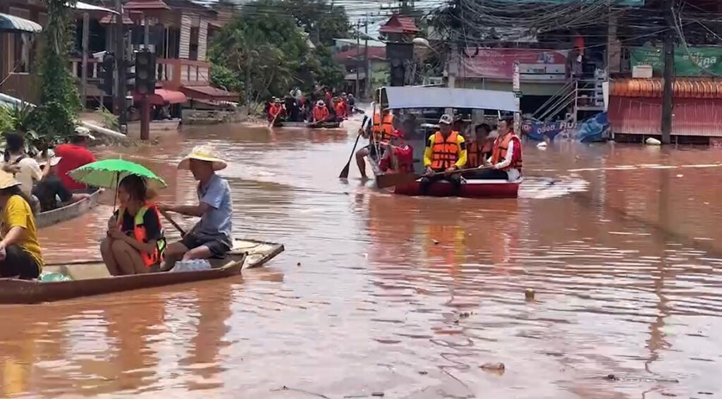 ช่วงเที่ยงที่ผ่านมา นางสาวแพทองธาร ชินวัตร นายกรัฐมนตรี ในฐานะหัวหน้าพรรคเพื่อไทย ลงเรือไปเยี่ยมให้กำลังใจชาวบ้านที่ประสบภัยน้ำท่วมในชุมชนภูมินทร์-ท่าลี่ เขตเทศบาลเมืองน่าน ซึ่งน้ำยังท่วมสูงกว่า 2 เมตร โดยนายกรัฐมนตรได้มอบถุงยังชีพและน้ำดื่มให้กับชาวบ้าน หลายคนดีใจที่นายกรัฐมนตรีเดินทางมาเยี่ยมให้กำลังใจในวันนี้ื
